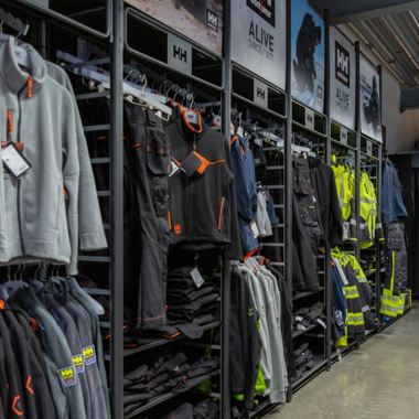 Du kan velge mellom arbeidstøy fra Helly Hansen, Snickers, Blåkläder, Tracker og Bekken & Strøm og vernesko av merkene SIEVI, Helly Hansen, Jalas og Monitor.