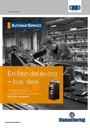 AutomatService er en tjeneste for sikker oppbevaring der fornødenheter, utstyr, maskiner, bilnøkler, datamaskiner, projektorer, boremaskiner, merkeapparater, efter mer lagerholdes hos dere. Skapene plasseres ut på strategisk utvalgte områder på arbeidsplassen din og gjør det mulig for ditt personell å hente ut produkter selv, 24 timer i døgnet, sju dager i uken.